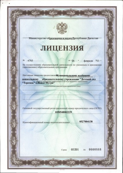 | Полное наименование образовательной организации* | Муниципальное казенное дошкольное учреждение "детский сад Термемок" село Новое Мугри |