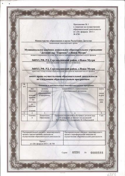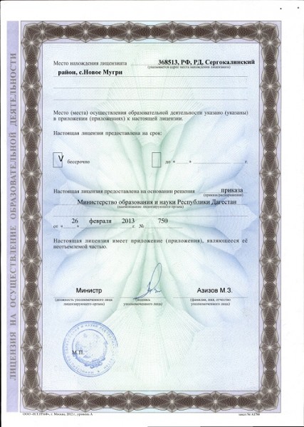 | Адрес местонахождения образовательной организации* | 368513, Республика Дагестан, Сергокалинский район, с. Новое Мугри |